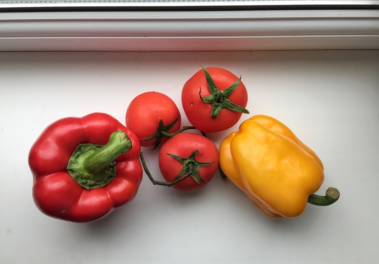 Сладкий перец и капусту нарезать квадратиками 3х3 см и тушить так, чтобы перец и капуста остались слегка хрустящими. Посолить. В конце добавить мелко нарезанный сельдерей, чеснок кружочками, закрыть крышкой и снять с огня.