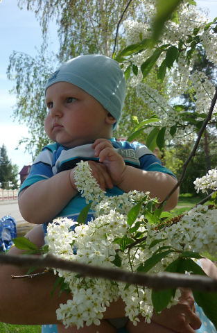 И расскажу наконец о нем! Растет как на дрожжах...Последний раз мерились в 8 мес 10дней: рост 76 см, вес 12,2 кг. Разбойник еще тот: открывает все шкафы, дверцы, ящики, наводит порядок в своих вещичках, громит все, сборка пирамидок, кубиков его не интересует, пока только рушим. Книжки только грызем,сколько не пытаюсь почитать, нужно обязательно взять именно ту,что в моих руках. Смотрим мультики, минут по 30 утром и перед сном.... Пока мультиконезависимый))) Скорей включаю для себя, чтоб появилось свободное время.С трех месяцев на ИВ, сейчас кушаем кашки, мяско, фрукты, овощи, печеньки, попробовали рыбку. Из умелок:,