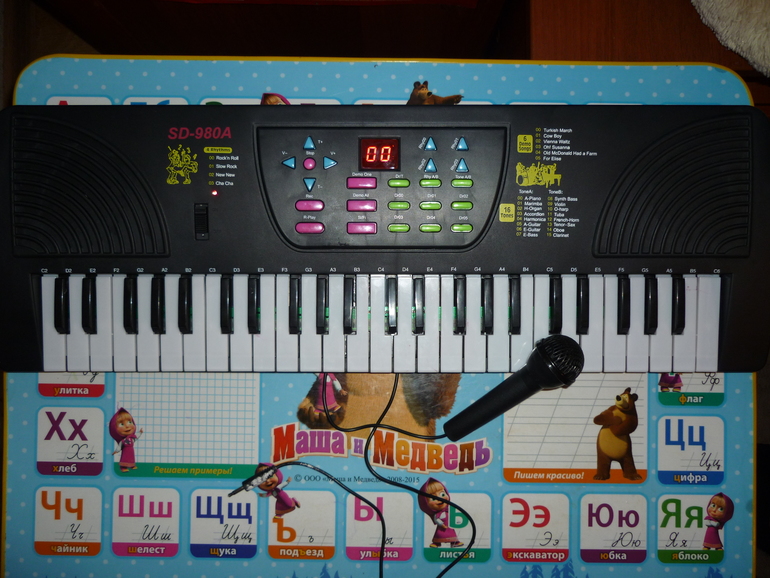 И как-то зашла за хлебом в магазин и случайно купила такой вот синтезатор сыну: