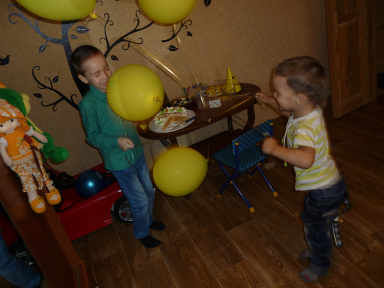 А на следующий день с угощением и шариками пошли в сад, где Матюху , кстати, начали чаще хвалить)))):