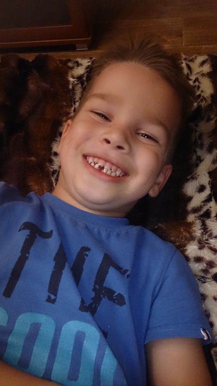 Сегодня, в 5 лет, один месяц и одну неделю у Матюхи выпал первый зуб) Радуется, что наконец прилетит фея и положит денежку под подушку.