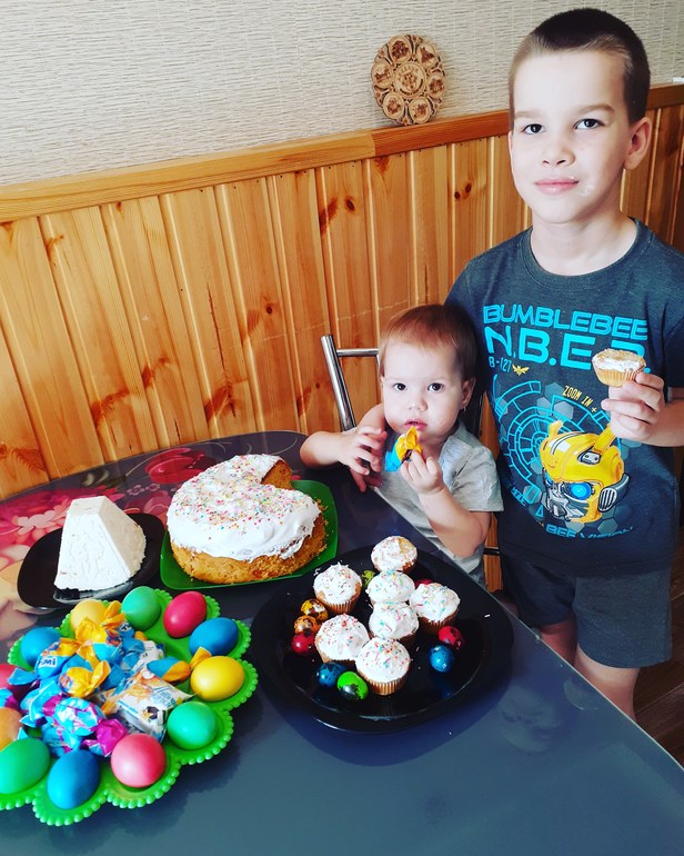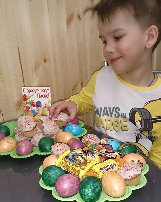 По традиции, раздав угощения деткам и соседям ,пошли к родителям. Это была первая пасха Василюши 😊