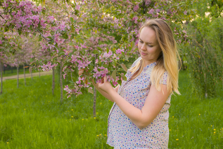Дальше начались всевозможные цветения и мы постоянно сами фотографировались. С этой беременности у меня очень много цветущих фотографий