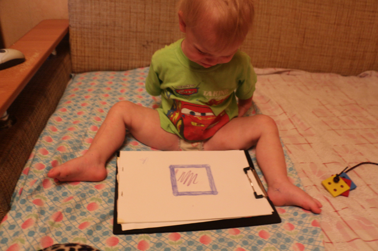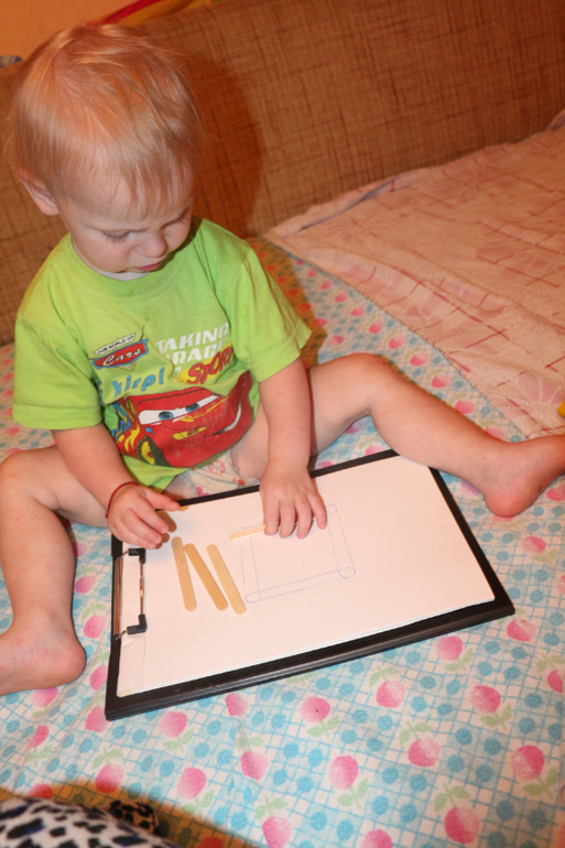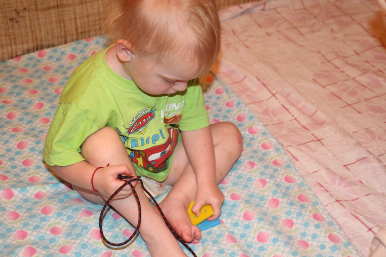 7. Шнуровка, развитие мелкой моторики. Делали квадратики.