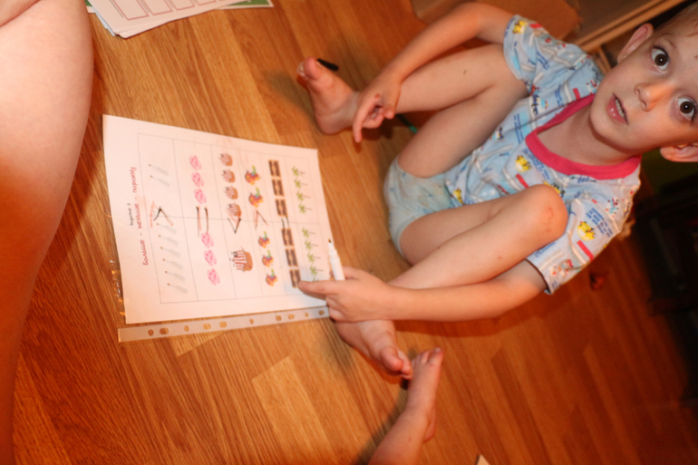 2. Выполнили упражнения на внимание. Тут немного не очень приходилось напоминать. Сделала вывод, что такую игру нужно практиковать ежедневно.