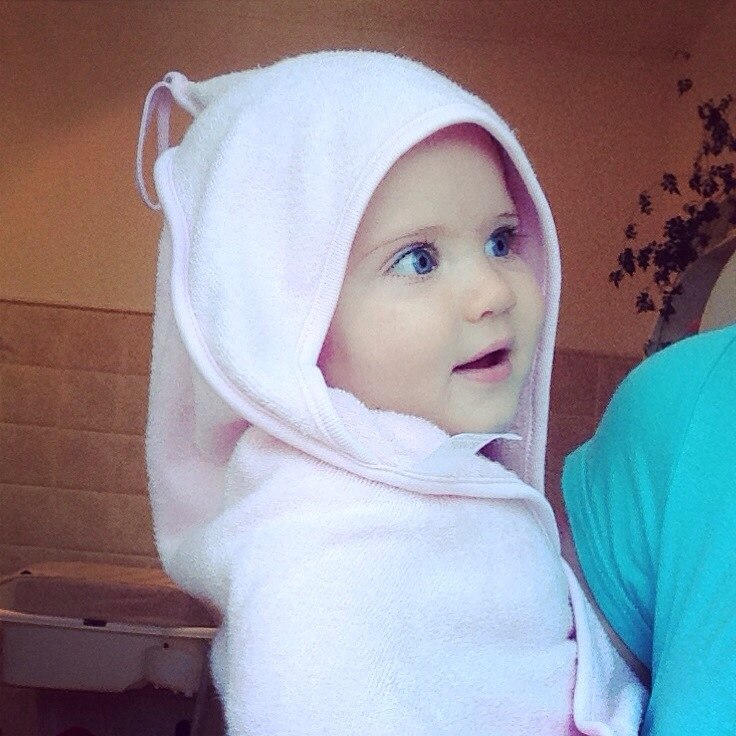 Очень любит общаться. Уже видимо прошел период "Только мама", сейчас она с удовольствием улыбается незнакомцам, тянет ручки, предлагает поиграть. На руки тоже идет без слез.