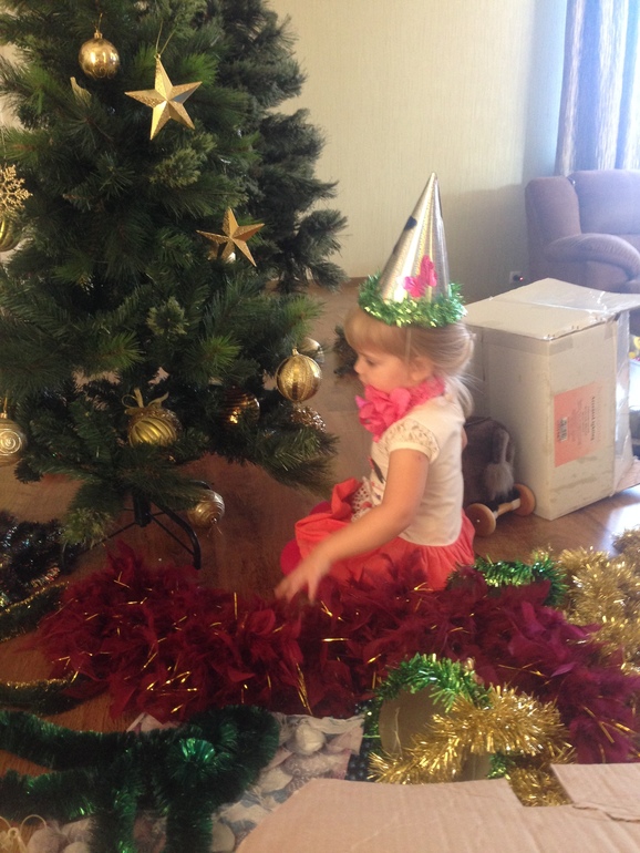 Целый день все украшали, потом поняли, что у нас катастрофически не хватает игрушек, отправились за игрушками, вечером смотрели рождественские семейные комедии!