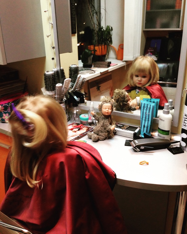 Мастер думала, сейчас будет кричать и убегать, но не тут то было! София спокойно сидела в кресле, играла с киндером, потом с монетками, с моим телефоном.