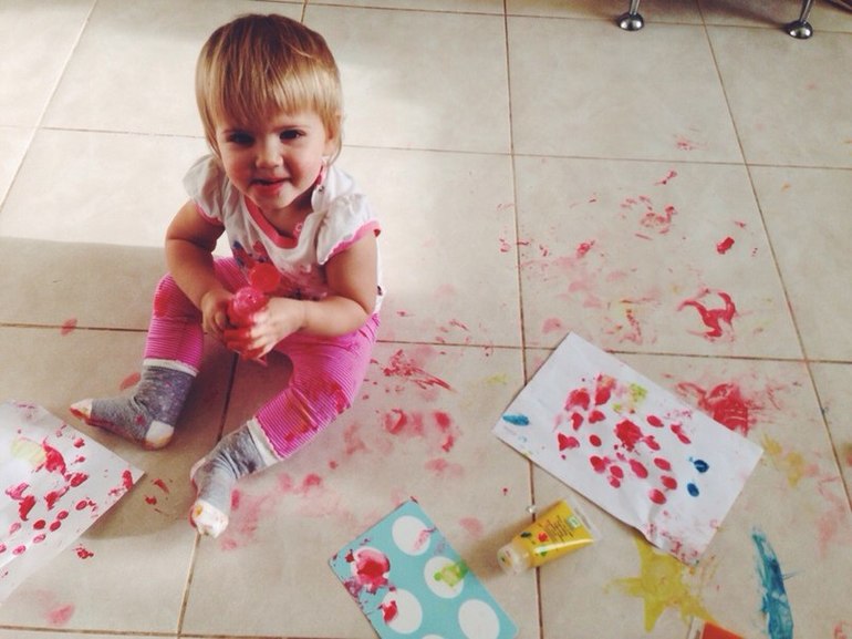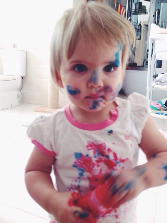 Я - набор музыкальных инструментов, бабушка - сказки, мой дядя - грузовую машину с маленькими шариками, моя хорошая подруга - набор пальчиковых красок для самых маленьких. Мы их, кстати, уже опробовали. Рисованием это было сложно назвать, скорей это было знакомство с красками и их консистенцией, цветами. Не прошло и 10 минут как я увидела у Софи синюю прядь волос и красные губы, современные девушки они такие, что сказать?)))