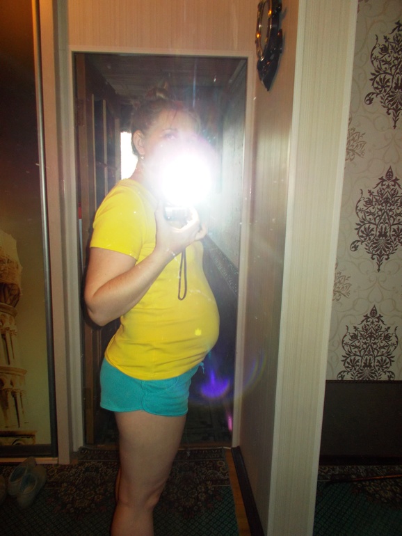 а еще у меня появилась фотка пуза =) извиняюсь сразу за зеркало грязное, оно в коридоре у нас и постоянно его все руками ляпают.