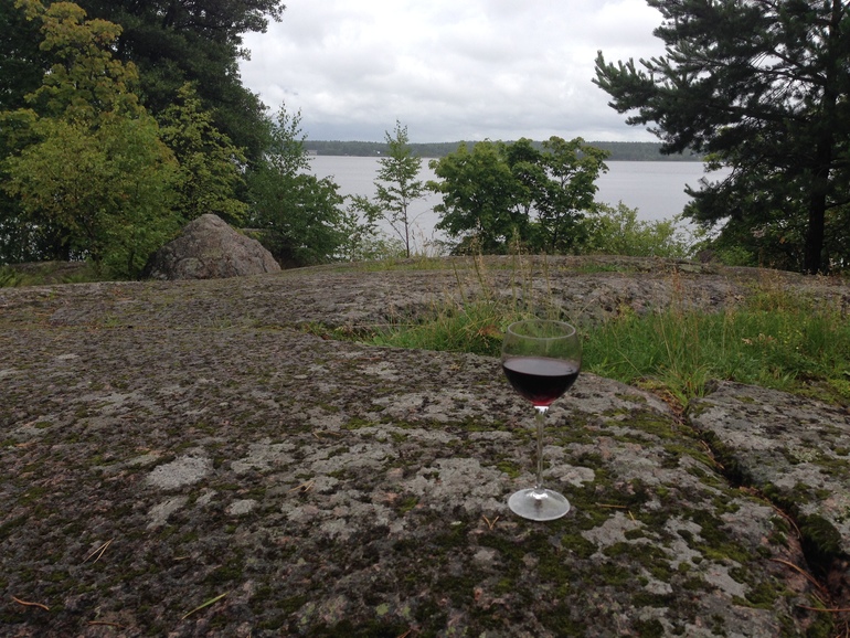 Сначала он достал наш самый большой, самый прекрасный, самый уютный и мягкий плед на свете, цвета слоновой кости, и небрежно бросил его на мокрый валун. Потом из рюкзака стала появляться еда: два батона (!), огромная палка вареной колбасы (!), всевозможное печенье, сушки, упаковки с разными сортами сыра и прочая снедь. Потом он извлек банку кофе, коробку чая, два термоса и чашки, наши самые настоящие домашние стеклянные чашки, а еще настоящие вилки и ножи. То есть не пластик там какой-то. И наконец-то всю эту картину увенчала бутылка вина и бокалы, естественно, самые настоящие стеклянные. Умереть с голода на этой скале у меня не было никакого шанса.