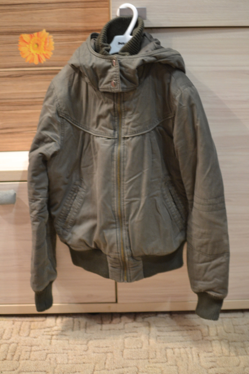 Продаю куртку б/у в хорошем состоянии. Цвет болотный с потёртостью. Из нюансов катышки на трикотажных манжетах (можно удалить) и малюсенькая дырочка на рукаве ( на фото видно). 300р