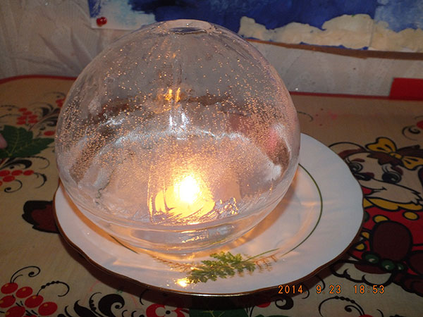 В какой-то из следующих дней (как раз перед днем рождения) мы сделали ледяной подсвечник. Красота необыкновенная: