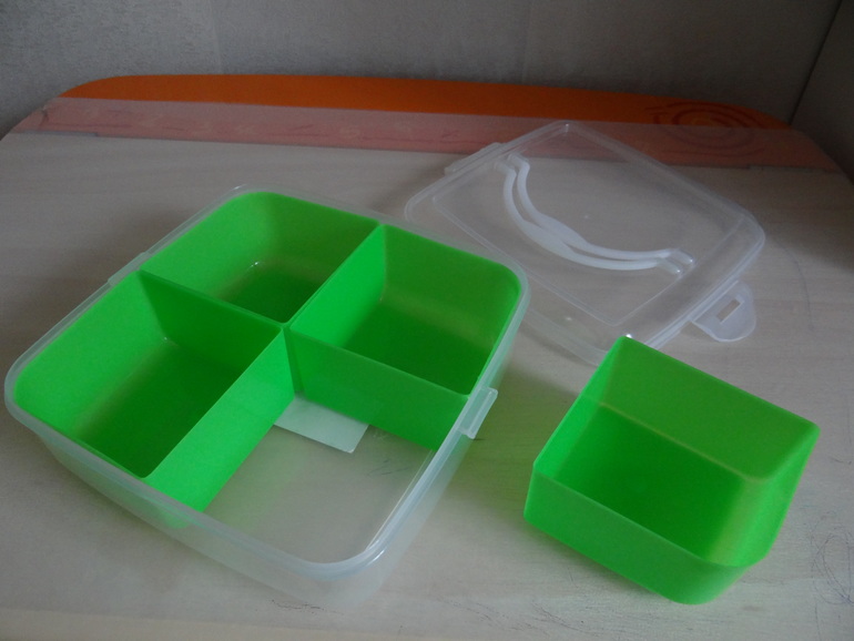 Коробочка с крышкой и ячейками, которые вынимаются. Вот пока не решила для моих нужд она пригодится или Макса. Есть идеи?)))