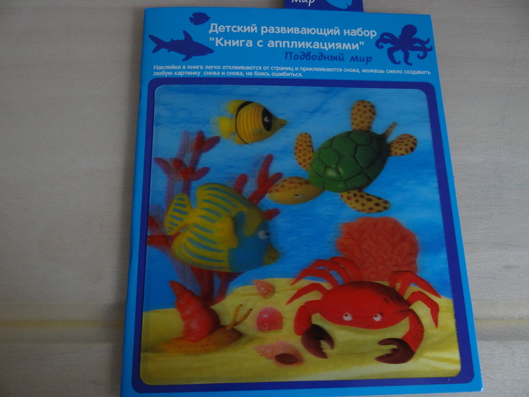 Книга с аппликациями. Купила потому что тут рыбы. Ну как пройти мимо, когда это главная страсть ребенка? На обложке переливающаяся картинка