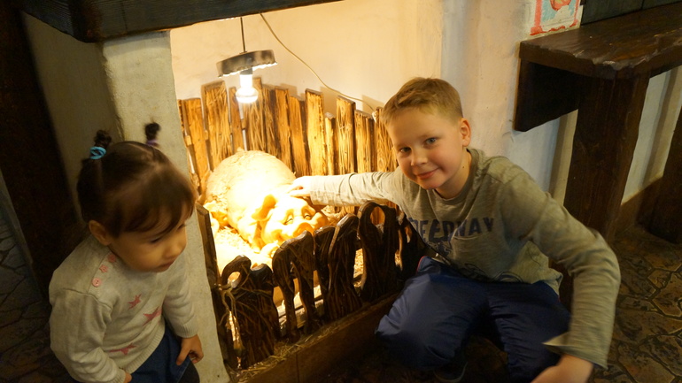 И чем дети могут там заняться? Естественно поиграть в прятки и поорать. Благо это был понедельник и в ресторане кроме нас никого не было. А то опять пришлось бы краснеть