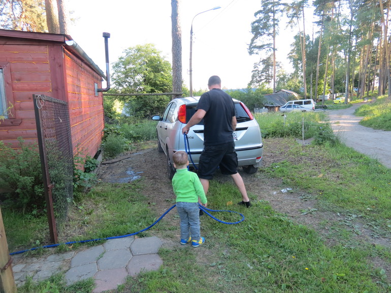 помогал сначала поливать и полоть цветы в приусадебном парке. а потом повалили посетители и мы пошли экскурсоводить. Ясеку так понравилось это дело. пришла пара просто пройти по музею без экскурсии. так Ясек увязался за молодым человеком и я через всю анфиладу слышала Ясин голос: "это диван на нем сидеть надо... сюда... да. павильно. идем... это пак надо гуять" и так далее на своем ломанном русском и люди понимали его. потом он повел людей в мезонин по дороге считая сундуки.