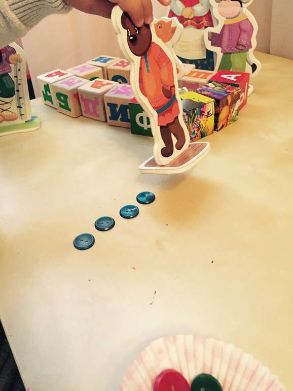 6. Когда выполняли задания для определенного зверя, строили им дорожки из пуговиц определенного цвета и они убегали по ним.