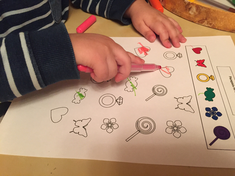 Сначала рассказала в картинках историю возникновения праздника, потом поделали некоторые распечатанные задания и дальше целый день обнимались и целовались