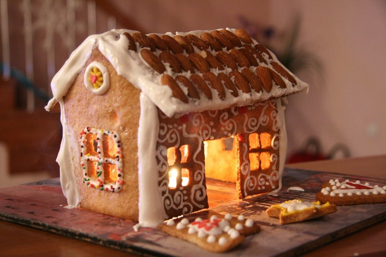 Уже лет 5 в преддверии Нового года я делаю пряничный домик. Во-первых, для меня сам процесс его приготовления уже сам по себе как праздник: вся квартира наполняется невероятным ароматом специй, появляется новогоднее настроение. Во-вторых, так приятно, проснувшись 1 января сделать чай, включить телевизор, и под какой-нибудь новогодний советский фильм, или веселое шоу выпить его с кусочком хрустящего пряника.
