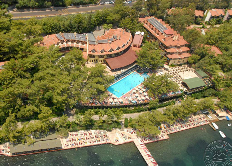 В 95 км от аэропорта г. Даламан, в 7 км от центра г. Мармарис, в 2 км от г. Ичмелер. В парковой сосновой зоне, на берегу моря.