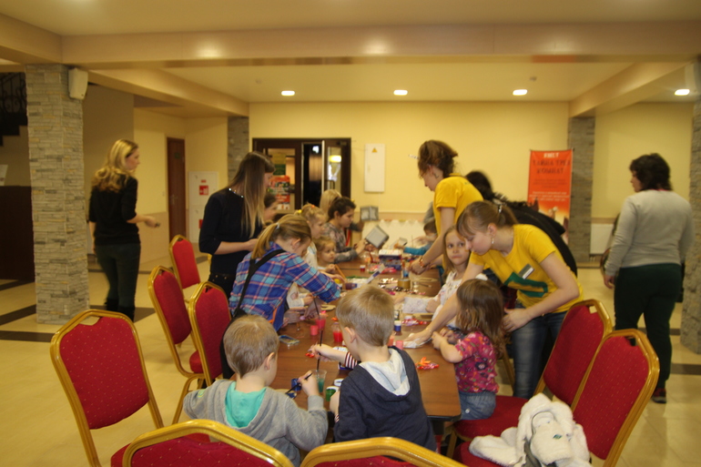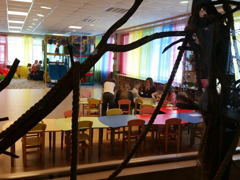 Так же в этом клубе проводились аниматорами различные творческие мастер-классы для детишек постарше: делали папам открытки, еще какие то поделки, в общем находились занятия.