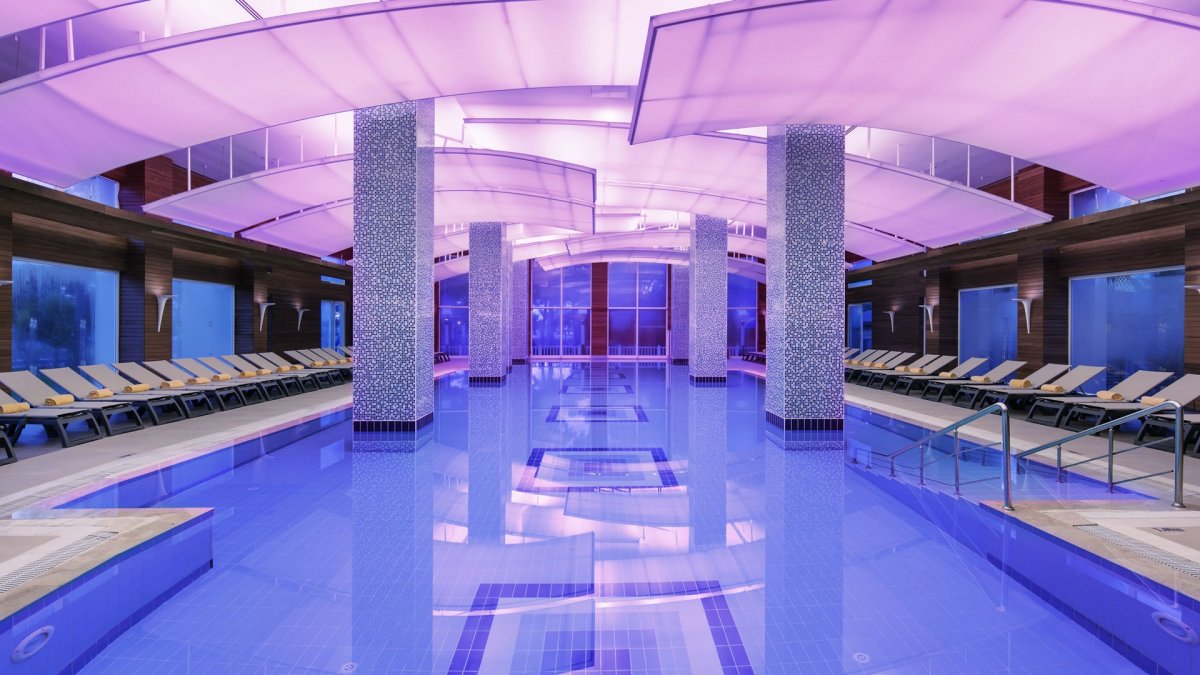 🏊♀ Крытый бассейн с подогревом включает в себя также секцию и для детей. Есть аквапарк.