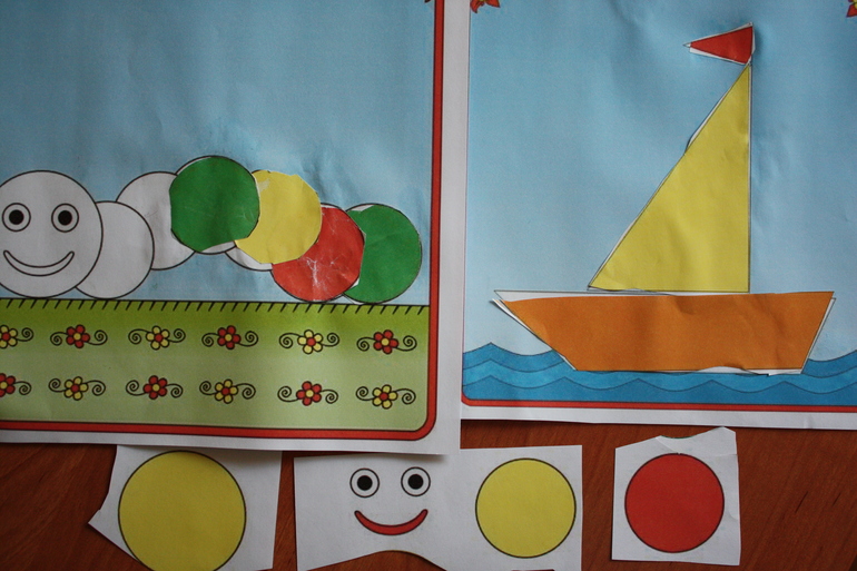 Совместная работа: Саша вырезала, Вера наклеивала с небольшой помощью