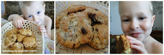 В ночи пробовала новый рецепт, где-то подсмотренный. Вкуснятина! Да еще и яблочки с изюмом. «То, что доктор прописал». Глебке самое оно. Пусть лопает.
