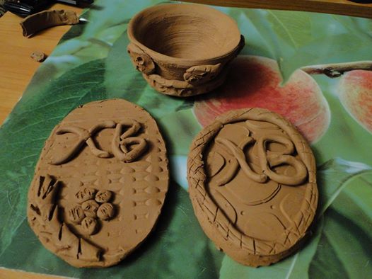 На прошедшей неделе Глебка пять дней подряд ходил на мастер-классы тульской керамистки, работал с глиной. Как я понимаю, лепка ему очень по нраву. Делали разные поделки: вазочка, чашка, которую впервые делал на гончарном круге, пасхальные яички, лев, домик-подсвечник. Еще не все видела вживую, т.к. работы остались на просушку. И время на занятиях, что понравилось, не фиксировалось. Что-то было сделано в пределах 30-40 минут. А с каких-то занятий Глеб возвращался после 2-2,5 часов работы. Сразу предупрежу, в работах помогала бабушка.