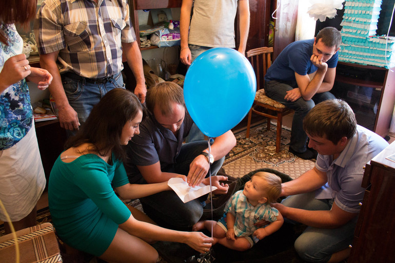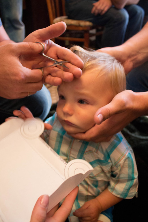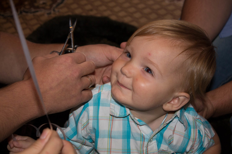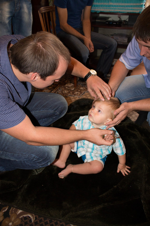 Когда стригли Сережку,он вытянул ключи от квартиры от машины и куколку(ну типо жену)