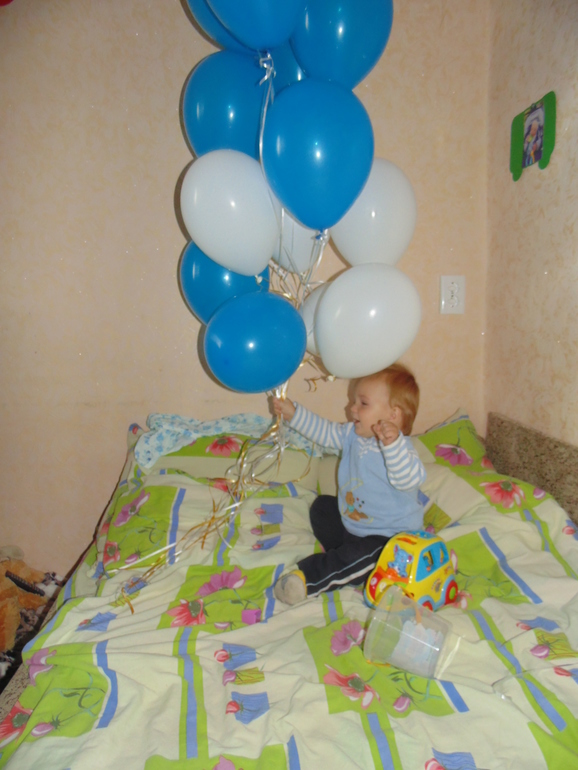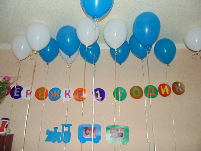 Был паровозик из фото,ростяжка "Сережке 1 годик" и "С днем рождения"(мои фото уже на следующий день по этому от паровозика осталась малость)