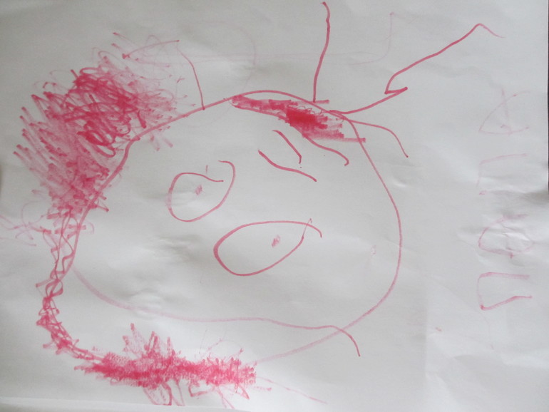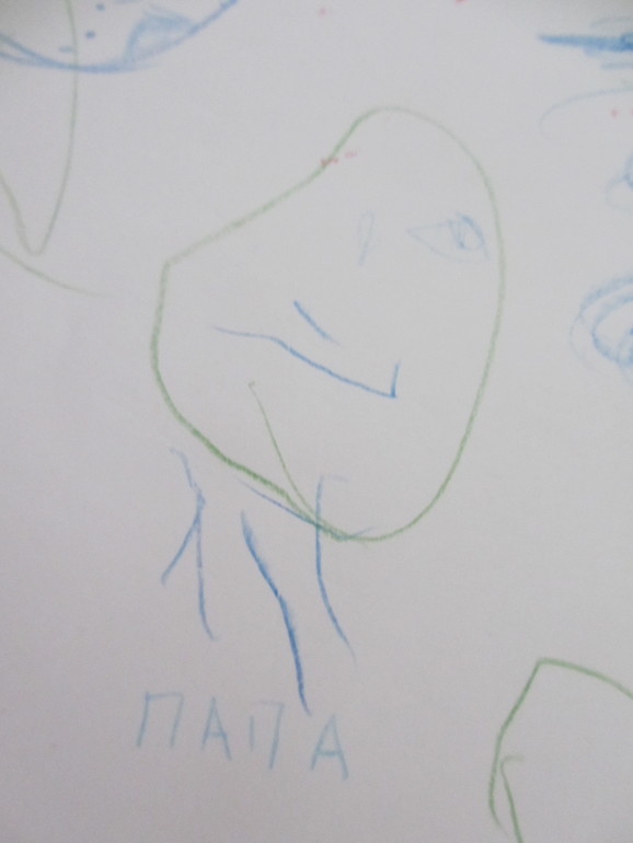 Наши "головоноги" по всей видимости приближаются к своей метаморфозе - вчерашний портрет папы обрел волосы! Это впервые!!! Потом подрисовала и бороду (посмотрела, пощупала..но по вопросу папы, заметила не сама). Вот, для своей истории