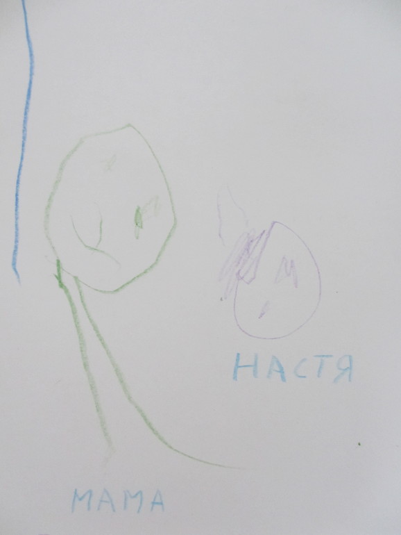 Рисует Настя не часто и в основном то, что ей близко и понятно: дождь, люди. Развития фантазии как-то не наблюдается, словно застряла....Надо бы развить эту линию, будет неплохо))) Занятий творчеством у нас мало, это да.