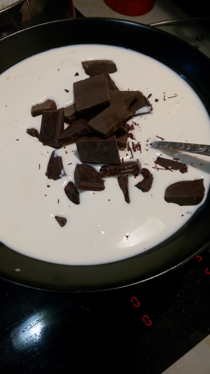 100грамм сливок и плитку шоколада нагреваем на водяной бане.