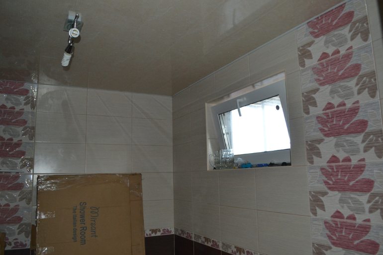 Плитку мастер выкладывал, потолок за день сделали. По канализации пока ничего не знаем, ждем от водоканала план, вроде самим можно прокапывать или искать подрядчиков, а подключать к колодцу уже сам водоконал будет