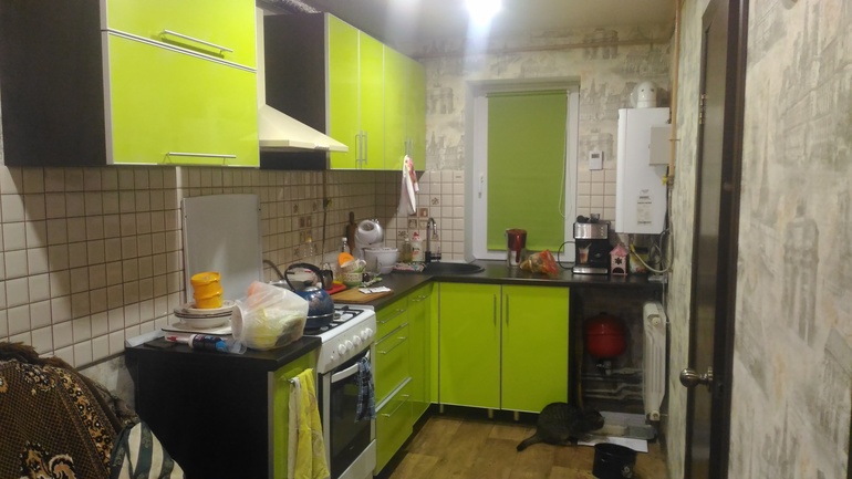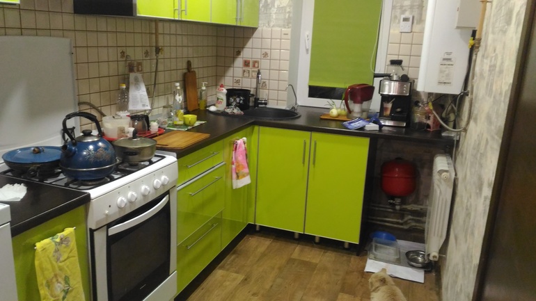нишу под распределительным бачком закрывать не стали, зато у котов осталось старое место где они питаются.