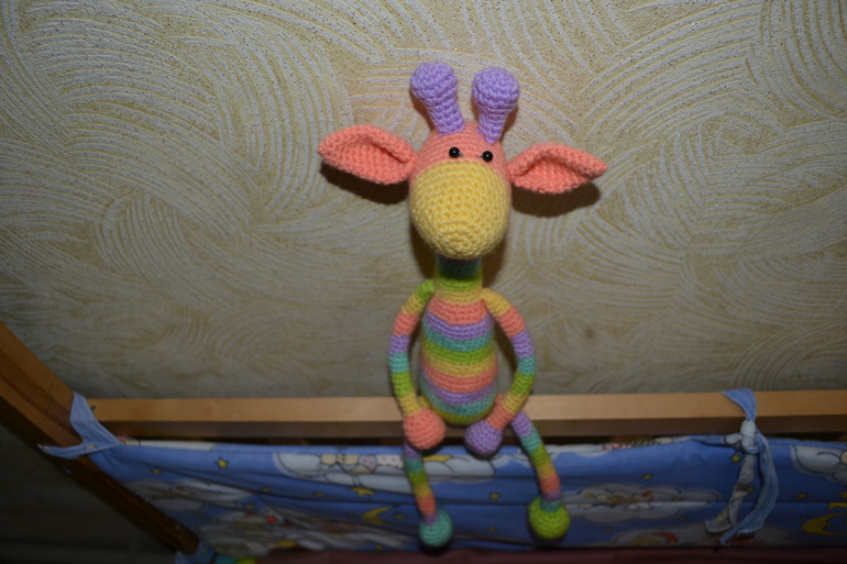 Так назвала его новая хозяйка. Попросила что нибудь желто-полосатое, вот и родилась такая расцветка. Вязался относительно долго, но с учетом рабочих и выходных дней, получился быстро )))