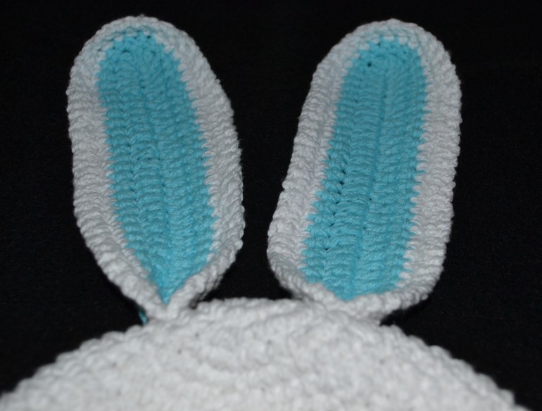 Связалась по заказу шапочка зайка, белая Олимпия Ариадна, бирюзовая Джинс в 2сложения, крючок 4мм