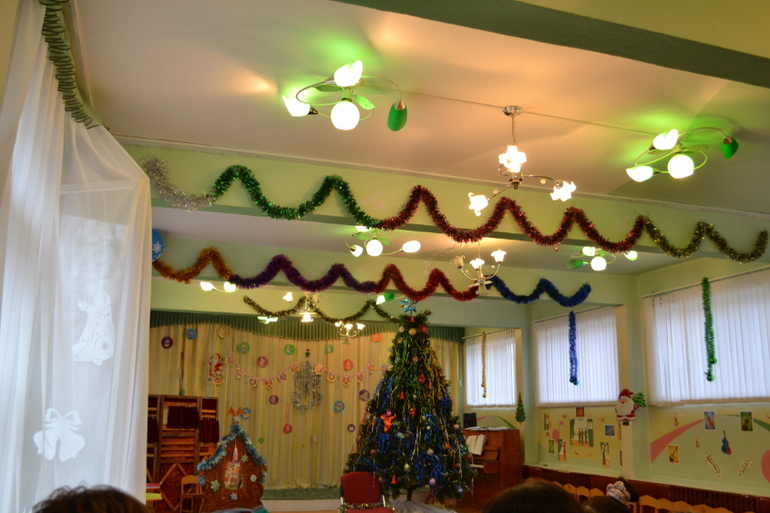 Родителей увели в 9, а утренник начинается в 9,30. Так что пол часа сидели и ждали. Мне досталось место в последнем ряду, так что все фото с головами.