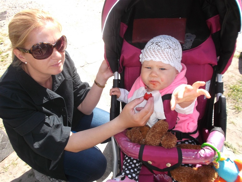 Кушаем уже клубничку,стараюсь больше двух ягодок не давать.