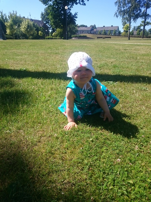 Анютка больше уже ножками ходит.И говорили мне как то,что станет легче,аннн нет,сейчас только и смотри чтоб камешек или бычок в рот не засунула.