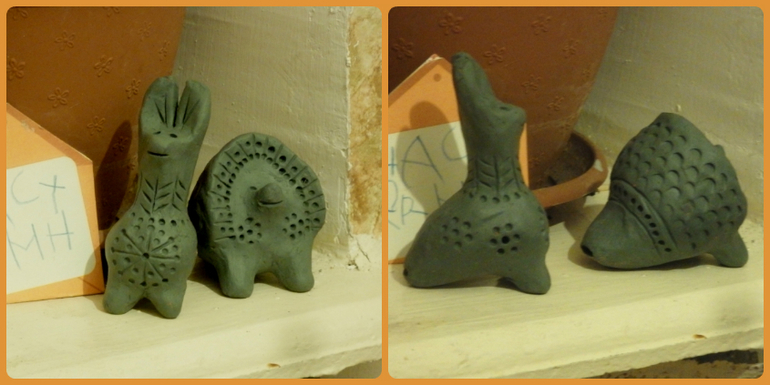 Т.к. ноябрь в народной игрушке у нас идёт глиняный, то с глиняными оберегами мы немного познакомились. Детям обычно - свистульки. Обычно - на верёвочке.