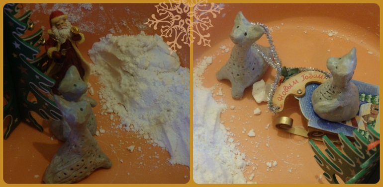 Вскоре пришла мама и дети отправились мастерить какие-то непонятные солнечные колёса, а Дымок и Дымка остались на столе разглядывать маленькую белую пушистую ёлочку. Возле ёлки Настюшка аккуратно поставила фигурки Деда Мороза и Снегурочки. Казалось, что эта необычная ёлка добавляет немножко зимы. Как будто снег, которого нет на улице, искрился и сверкал в этой маленькой детской комнате.