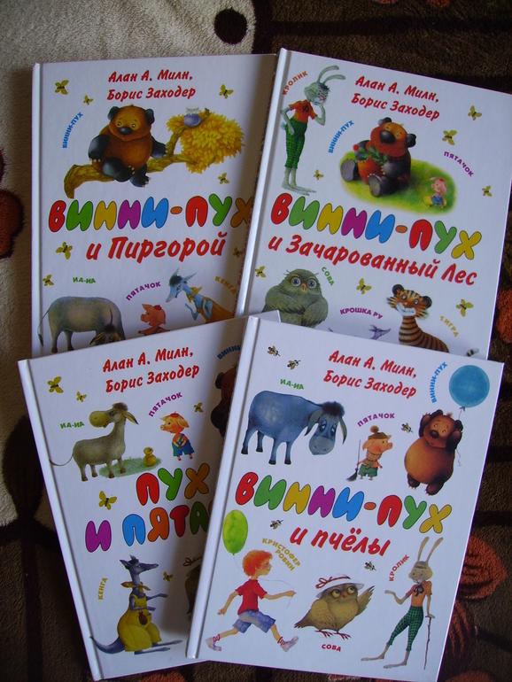 Выбирали-выбирали мы Винни-Пуха и остановились на вот таком - в 4 книгах, маленьких и тонких, зато в иллюстрациях Евгения Антоненкова.