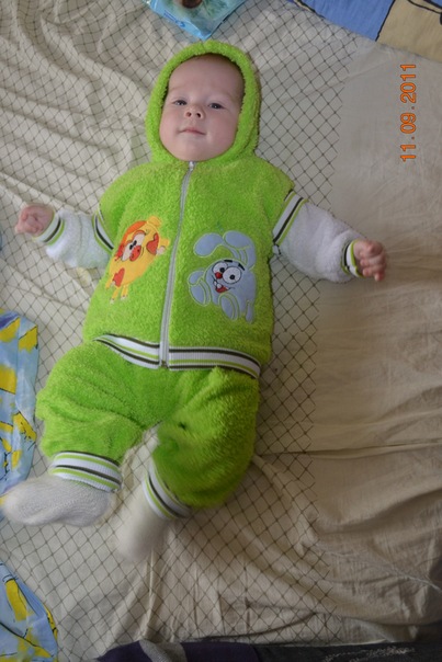2. Осенний комбинезон-трансформер Mothercare. Утепленный - внутри искуственный мех. Очень мягкий, можно носить до -15. Есть варежки на пуговках. Носили как конверт с рождения (с сентября) - рукава заправляла внутрь, ножки застегивала мешком, и как комбинезон весной. Размер 0-3 мес, но до роста 68 свободно. Можно и дольше. Нам до сих пор хорошо.