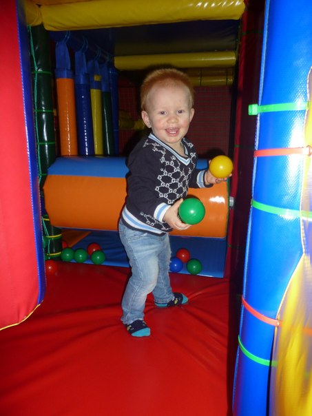 Палатку купили,вокруг нее бегает а внутри не играет,так залезет-вылезет)))на Новый год купили Ванечке клевый коврик,на нем рисовать можно (рисунок потом сам исчезает) и животные нарисованы еще,на них нажимаешь и крякают,хрюкают)))ну и немного фото))