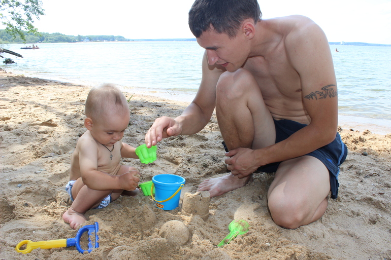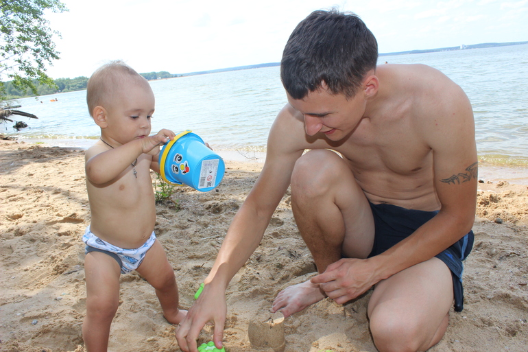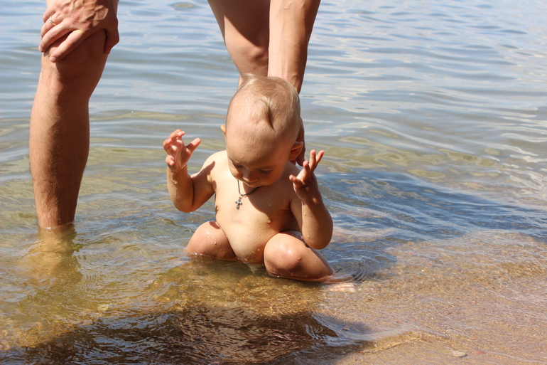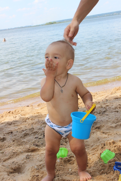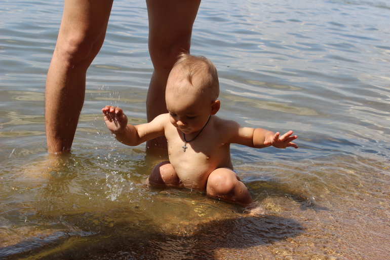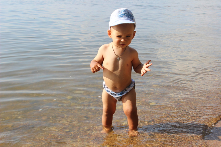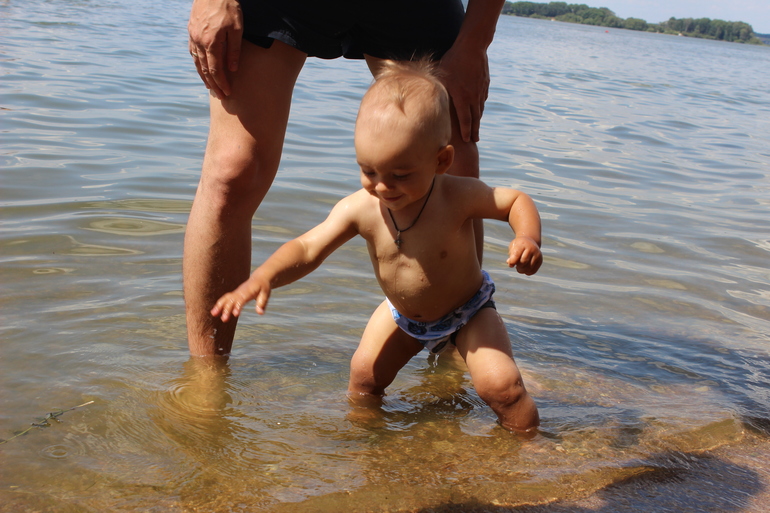 Никитка был в восторге от воды, прям как маленький лягушонок. Плескался и плескался. Аппетит на природе был просто отменный, постоянно что-нибудь точил.