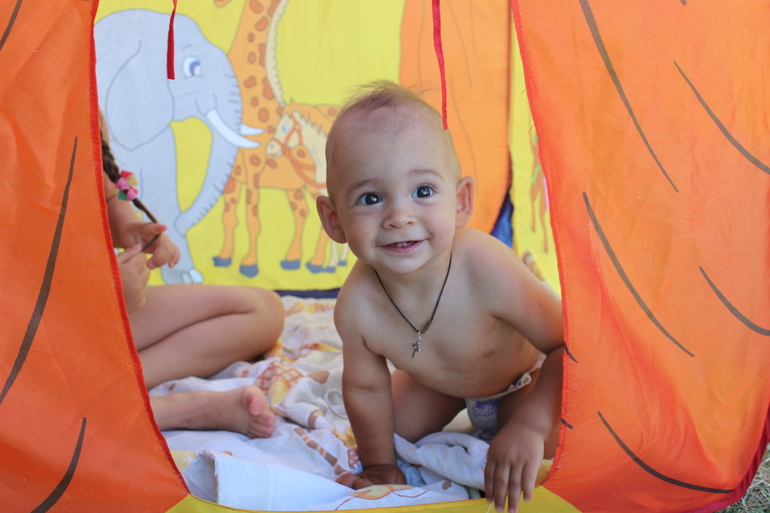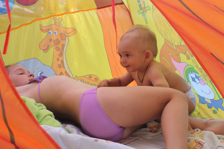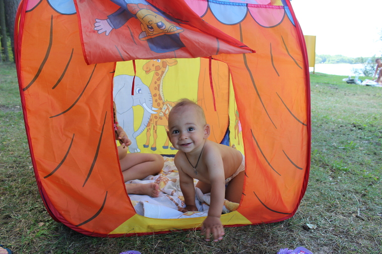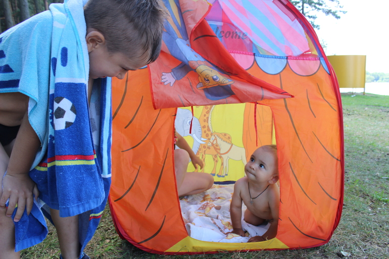 А это Никитка ведет палаточную жизнь)))Так прикольно,залезет в нее,голову достанет и выглядывает)))