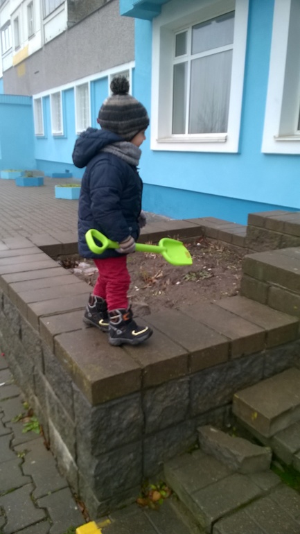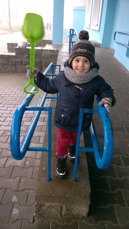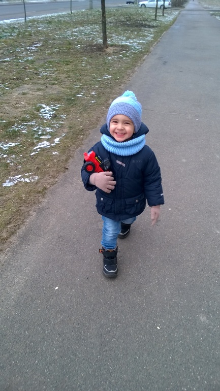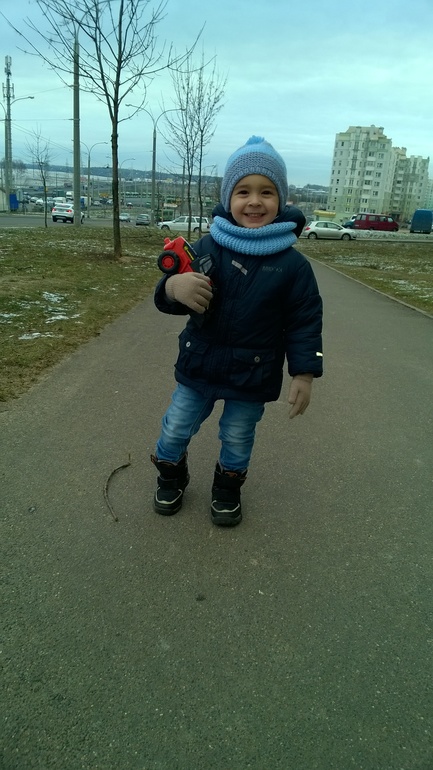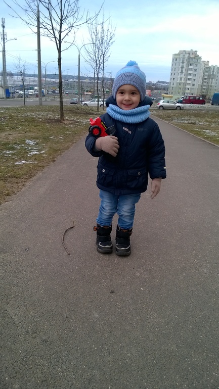 гуляли гуляли и Никита увидел санки.Пришлось с нытикам идти домой за санками))